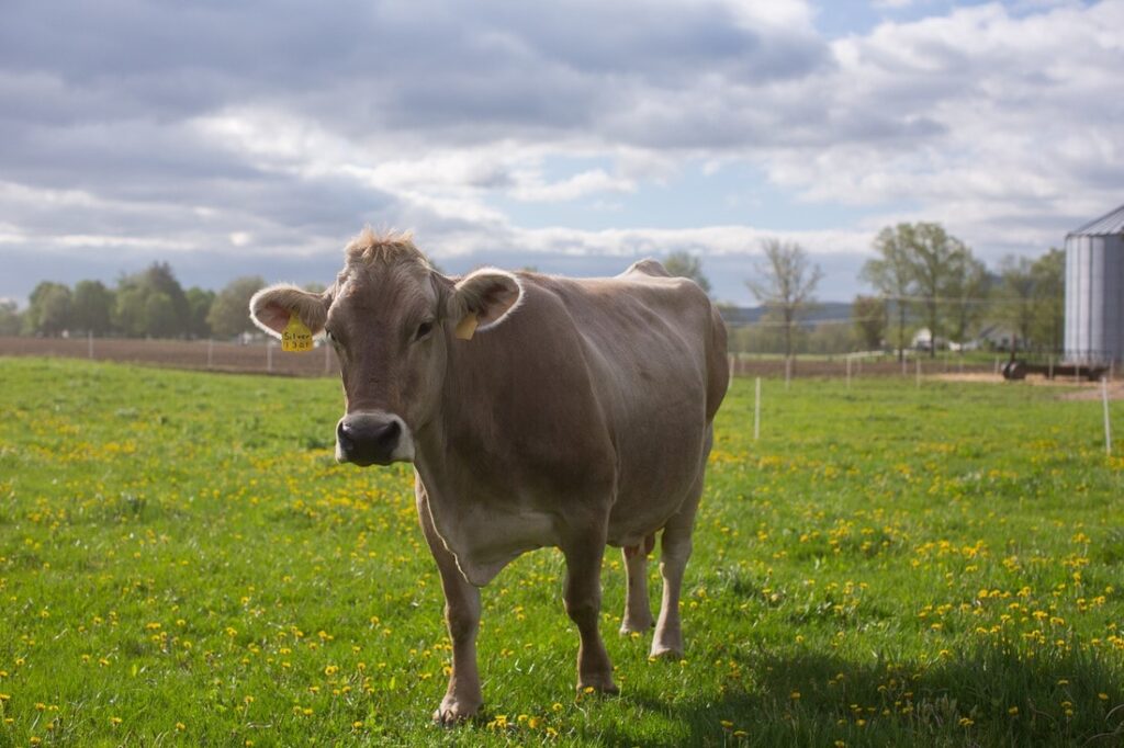 Silver, one of Maple Valley Creamery’s cows grazing in the pasture.