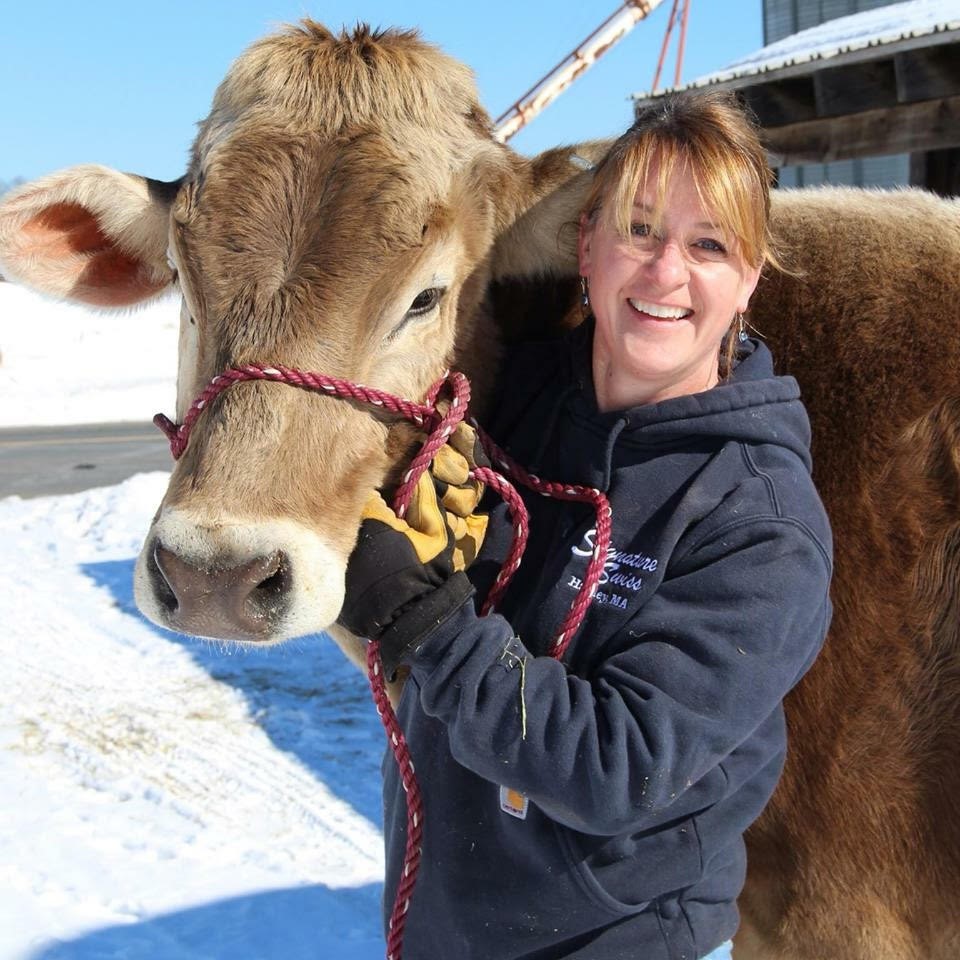 Laurie Cuevas with a Maple Valley Creamery cow.