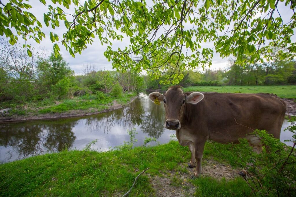 Pepi, one of Maple Valley Creamery’s cows by the farm’s pond.